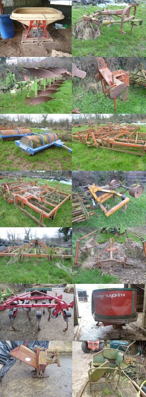 Qty Metal Yard Gates; Approx 20 Motorway Barriers; 2 2500l Titan Diesel Tanks; 2 Concrete Silage Pit Panels; 20 Concrete Sleepers; Approx 400 Concrete Sleepers (currently in the ground to make track); 10 Green Silage Sheet Covers; Round Goat Feeder; 8; Sodium Lights; Extension Spout to Slurry Tanker; Concrete Pig Slats; 8 Electric Fence Units; Large Qty Wooden Stakes; Large Qty Electric Fencing Stakes & Rolls of Electric Wire; 6 Plastic Water Troughs & Stands; Rolls of Wire Netting; 6 Lengths Pressure Pipe; Blue Alcathene Pipe (various sizes); Bags of Rock Salt; Bags of Lime; Dumpy Bags of Firewood; Various Spare Tyres; PTO Shafts; Pedestal Grain Drier; Cultivator & Plough Spares; Scrap Iron; Workshop Tools & Equipment; IBC Tanks; Drainpipe and many other lots